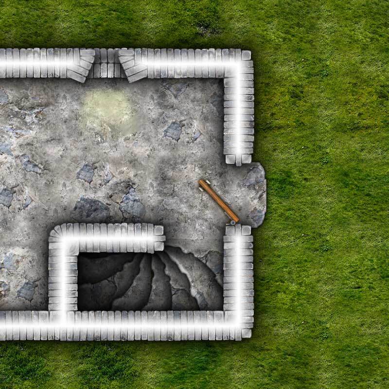 Our map tiles depict an area of terrain, such as the floor of a cave, an area of grass, or where the floor meets a wall. The map tiles are provided as ready-made art elements that can be pieced together on a digital canvas to form an adventure map that players can explore.
