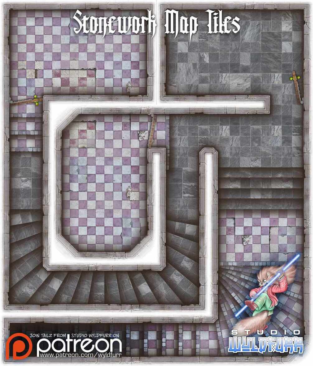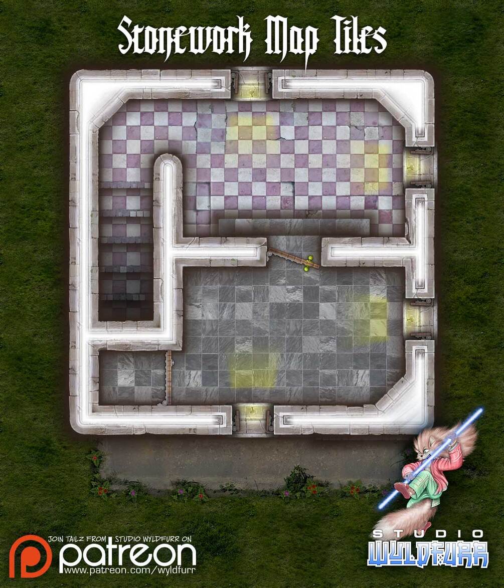 All Studio WyldFurr map tiles have a unique “look-n-feel” as each map tile is a combination of photographic source material, combined with hand-drawn artwork. Rendered at a scale of three on-screen pixels to each real-world inch, resulting in 180-pixel squares to each 5ft game grid.